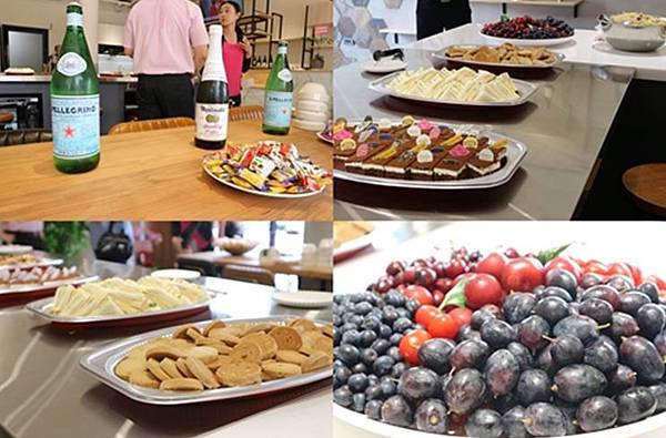 現場提供各式各樣小點與水果擺滿桌上
